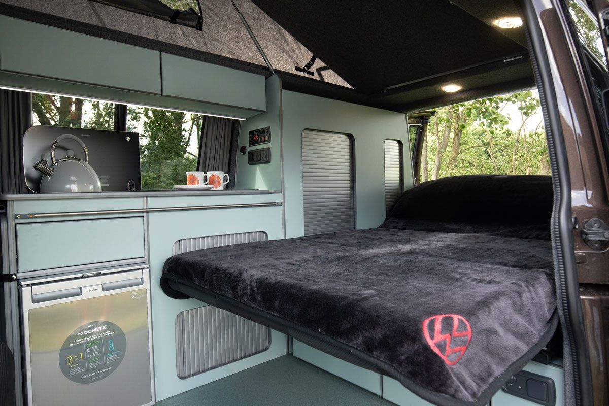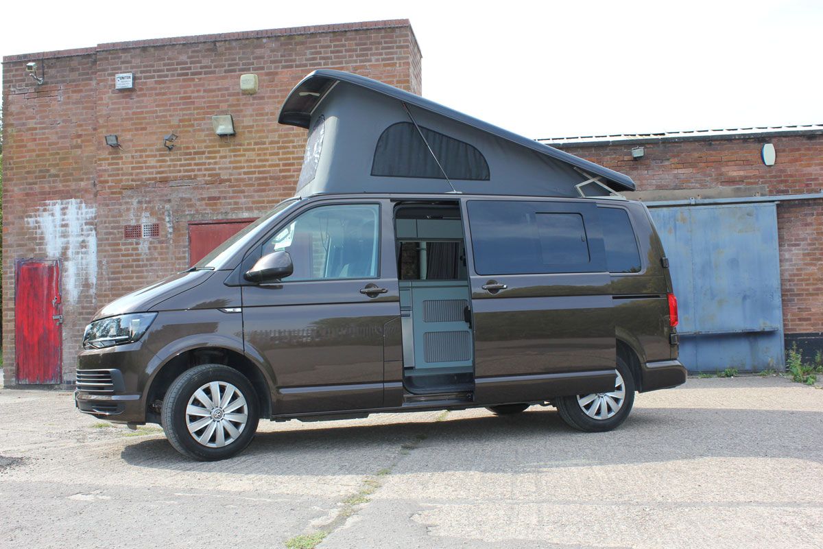 The sought after Chestnut Brown 2018 T6 SWB camper. Complete with coast2coast Campers Blenheim conversion.