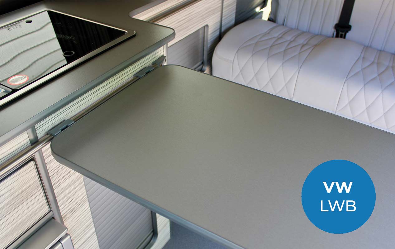 This includes extensive bodywork and interior design in materials to create a bespoke look. This VW campervan design will stand out in a crowd and not suitable for those who do not want to be noticed.
