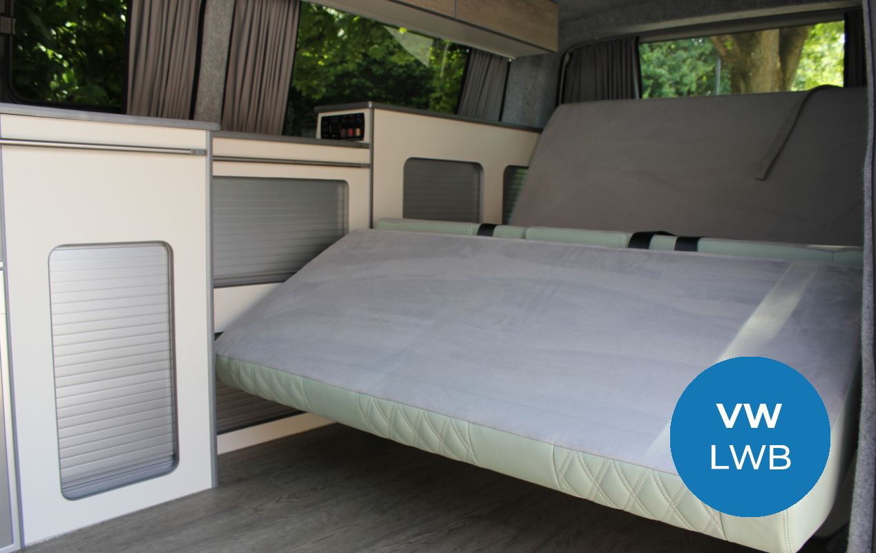 Our Brierywood camper conversion layout boasts a larger premium M1 tested 3-seater 129 RIB Altair bed system with an integrated slider and headrests, as standard, designed in response to a growing demand for a larger sleeping space and up to six travelling seats.