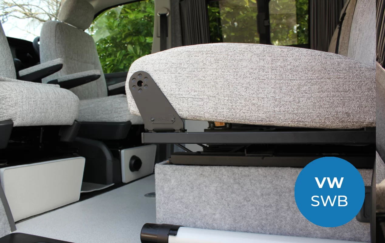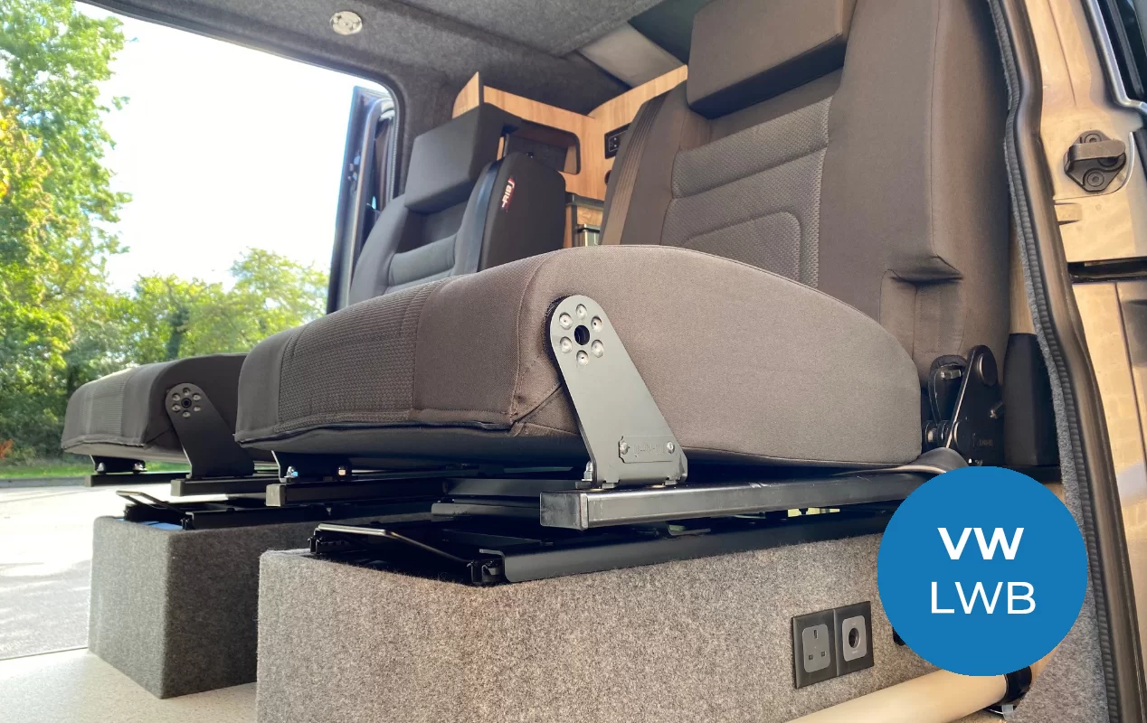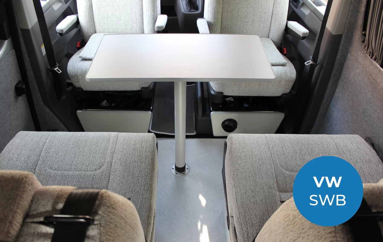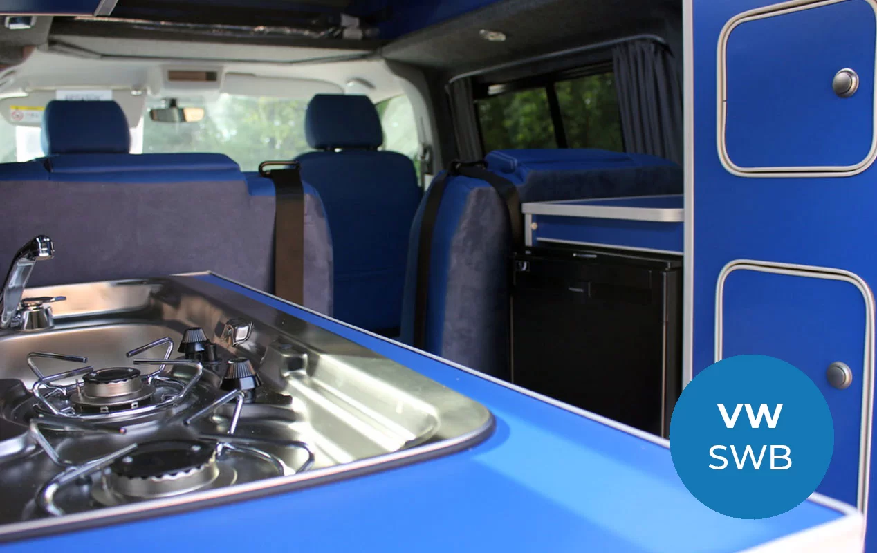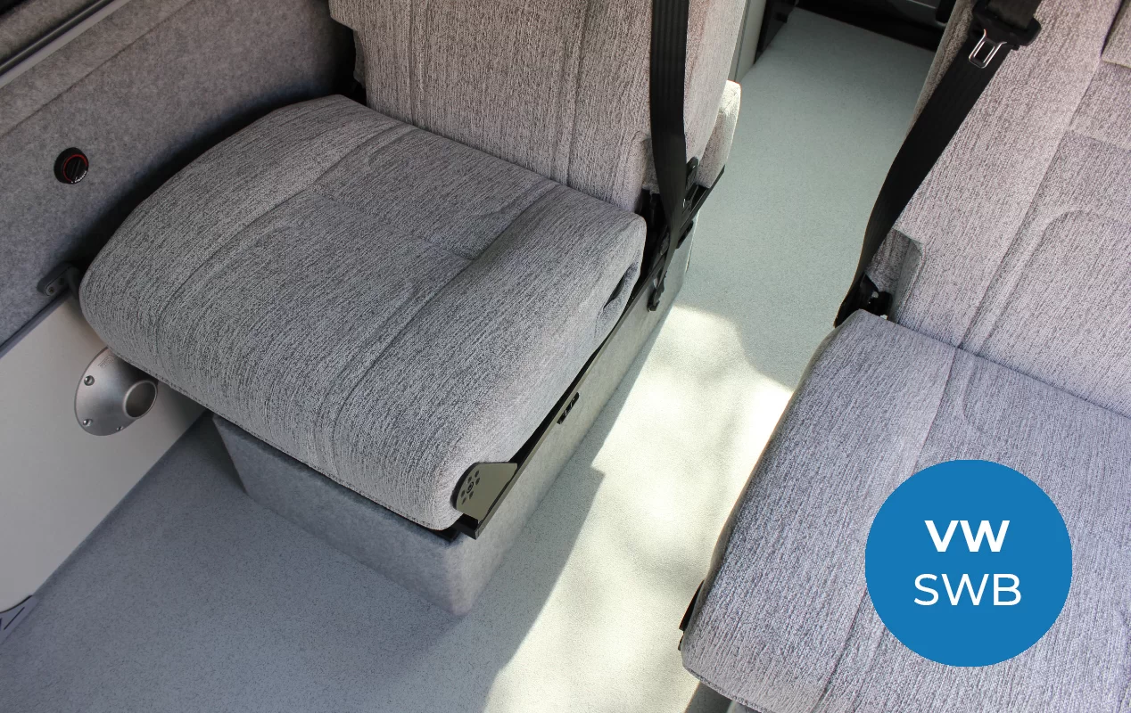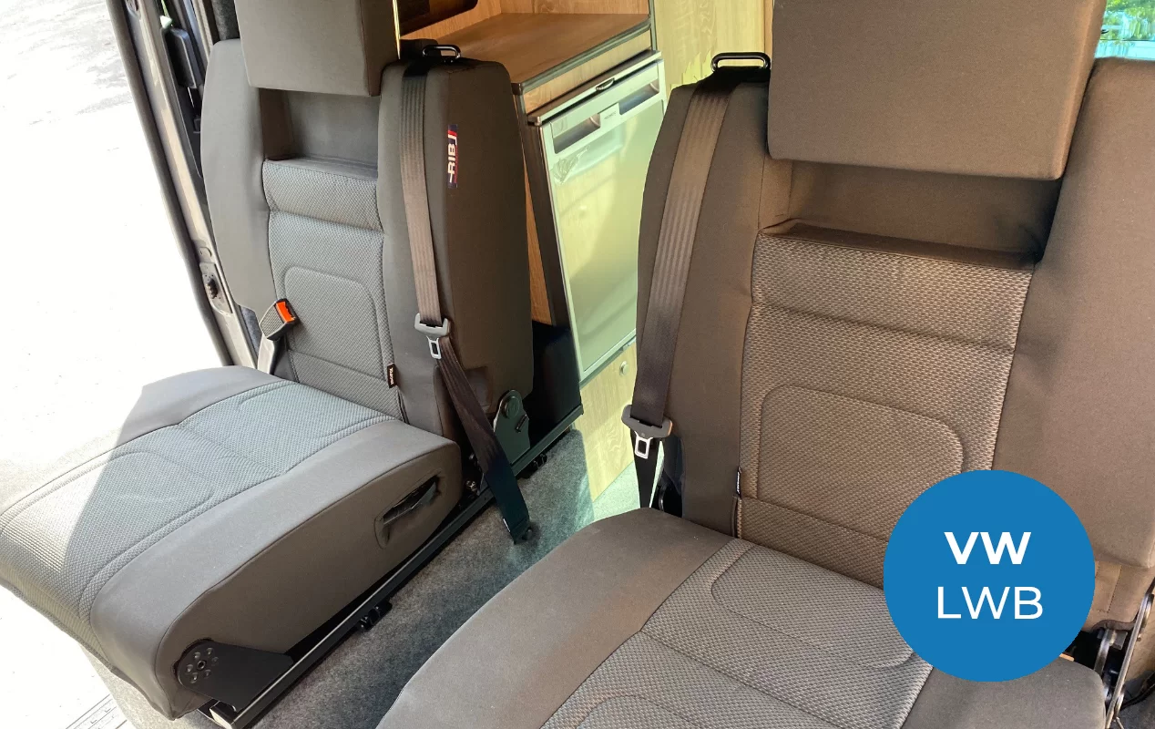 For parents wanting their children to sit closer to them near to the front of the camper or for couples planning a lot of travelling, our rear kitchen campervan conversion layouts make for comfortable wild camping, combined with great ‘go anywhere’ flexibility. With lots of storage space, this 4 or 5 seater, 2 or 4 berth family campervan boasts 2 single Neptune RIB M1 tested beds with sliders and integrated headrests, as standard, whilst offering housing space for a porta potti or fixed flush toilet. Add our heating and hot water system and you can even have a hot shower!