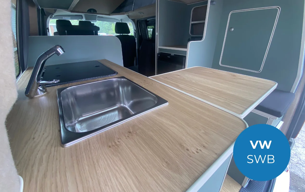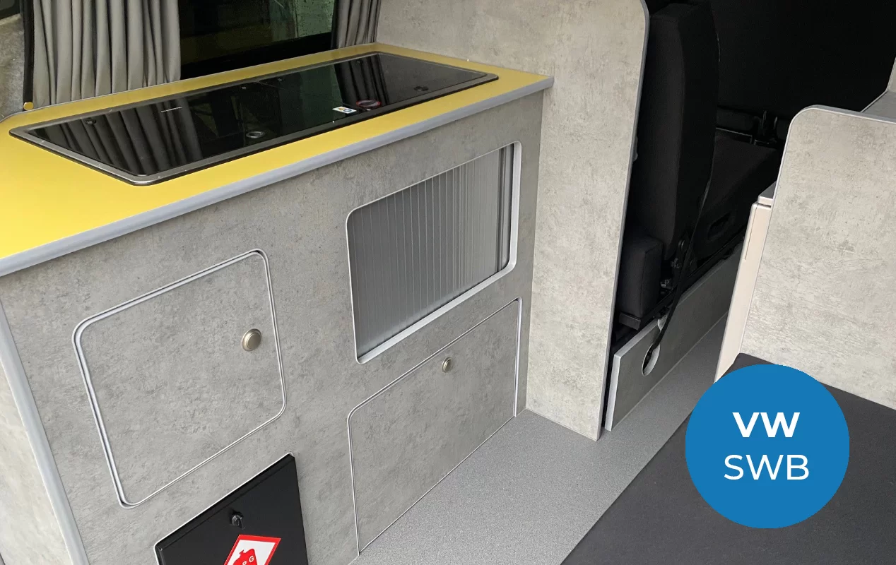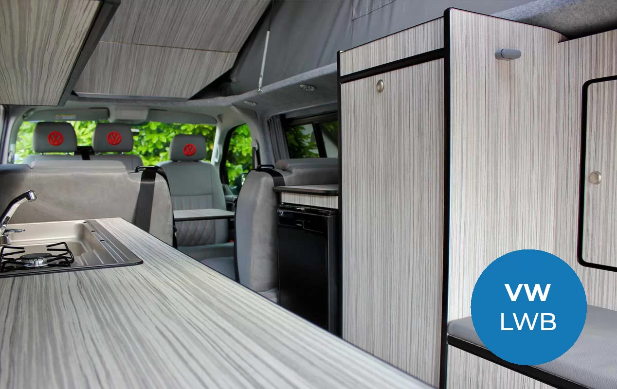 Our FREE custom camper van conversion build service means that your custom designed campervan can cost the same as buying one from stock. You can expect to pay from £50,000.00 for a complete VW Harvington Campervan.