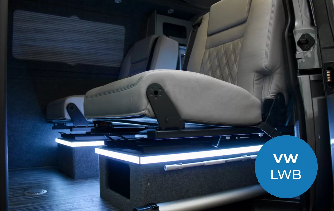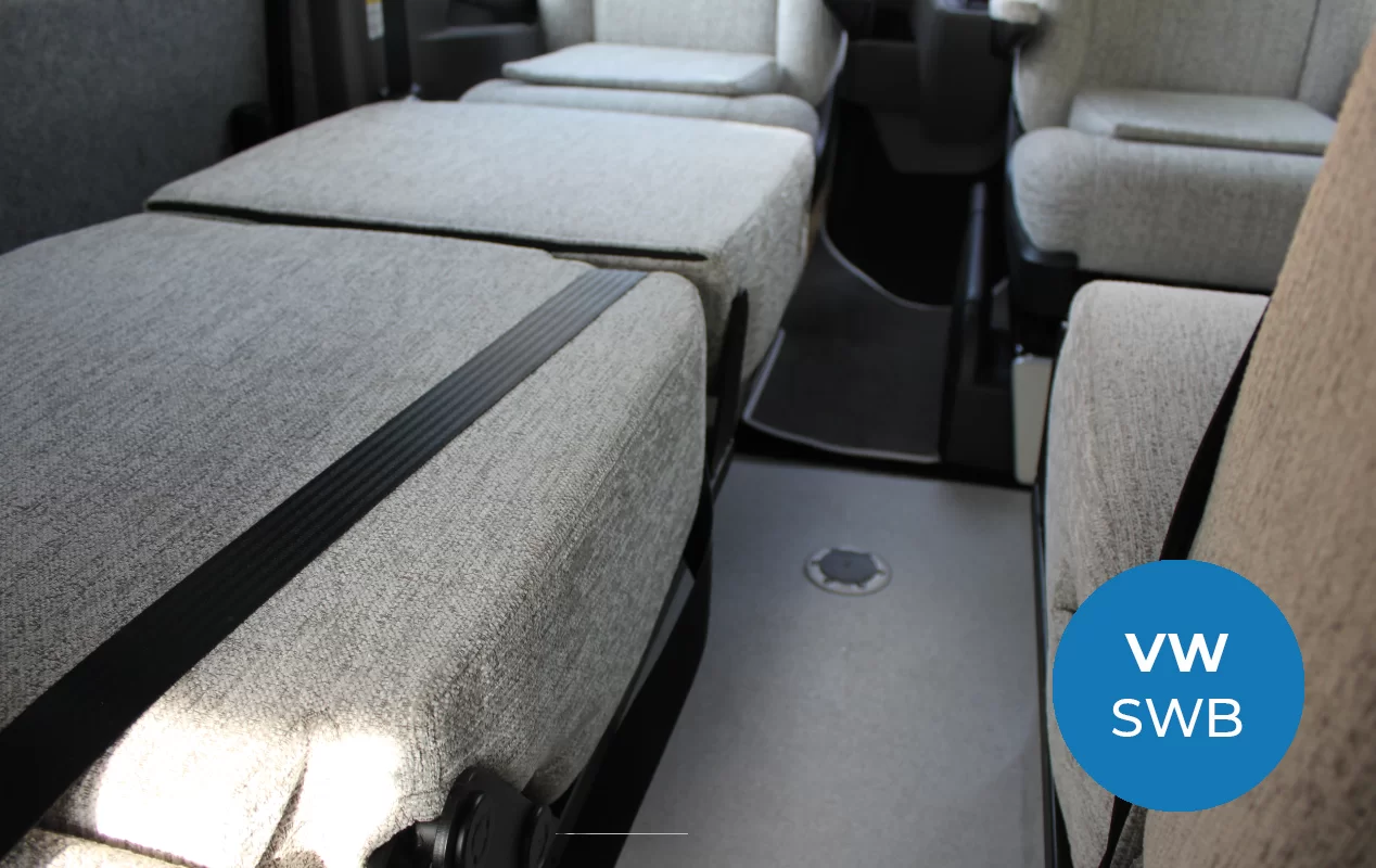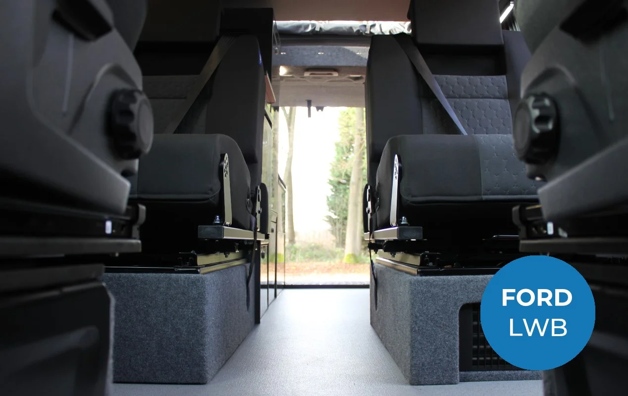 Drawing for illustration purposes. Double or single passenger seat options for all conversion layouts.