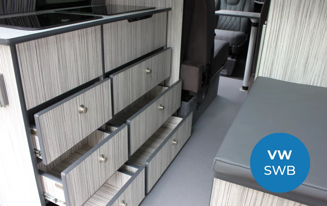 We can either convert your own van to our Harvington layout or we’ll source a donor van that meets your specific requirements. This includes make, colour, size and mileage. We can source brand new or second-hand donor vehicles, depending on your budget.