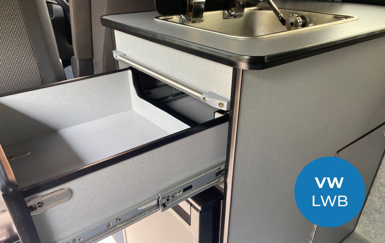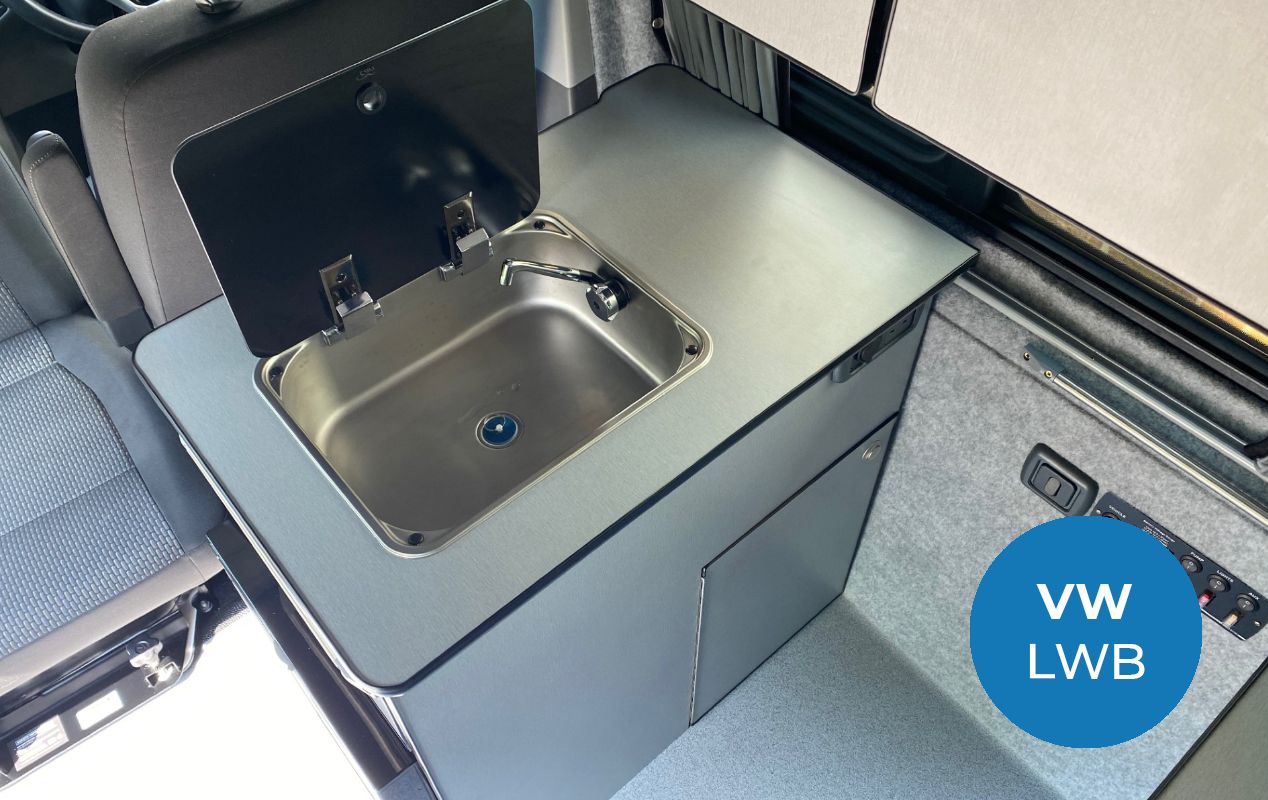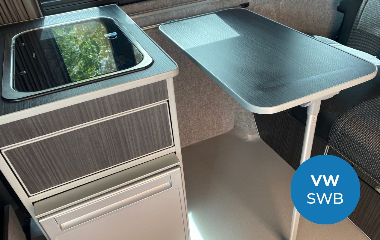 The Rothay day van campervan conversion features a full width RIB Altair bed system, a small kitchen pod, complete with a single burner sink and fridge with freezer compartment, perfect for those day trips.