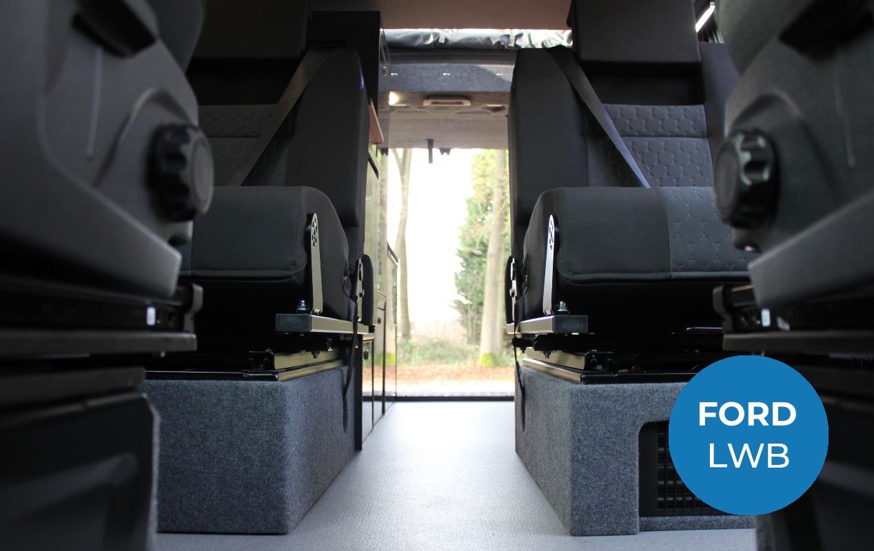 Drawing for illustration purposes. Double or single passenger seat options for all conversion layouts.