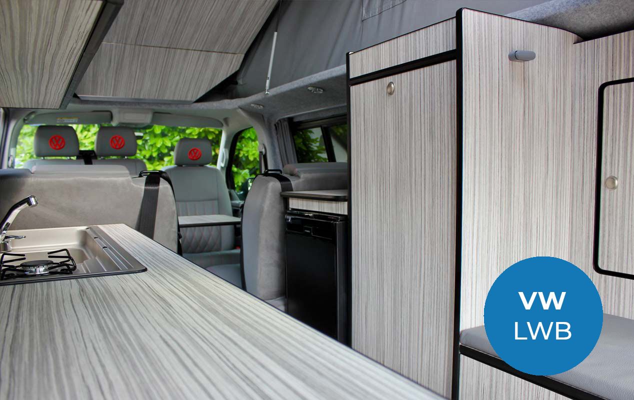 Our FREE custom camper van conversion build service means that your custom designed campervan can cost the same as buying one from stock. You can expect to pay from £50,000.00 for a complete VW Harvington Campervan.