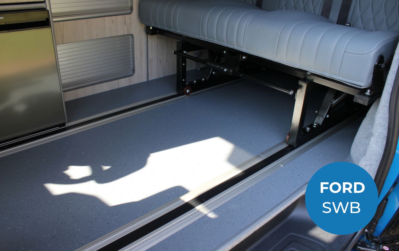 Similar to our Brierywood, our Cragwood campervan conversion layout boasts a larger premium M1 tested 3-seater 129 RIB Altair bed system with integrated slider and headrests, as standard, but with a unique furniture design to offer an easily accessible slimline wardrobe.